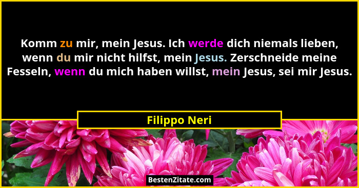Komm zu mir, mein Jesus. Ich werde dich niemals lieben, wenn du mir nicht hilfst, mein Jesus. Zerschneide meine Fesseln, wenn du mich haben willst, mein Jesus, sei mir Jesus.