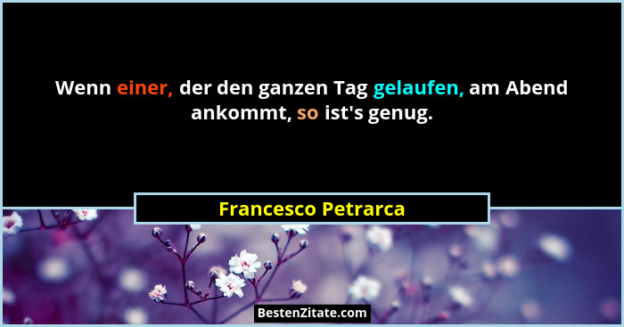 Wenn einer, der den ganzen Tag gelaufen, am Abend ankommt, so ist's genug.