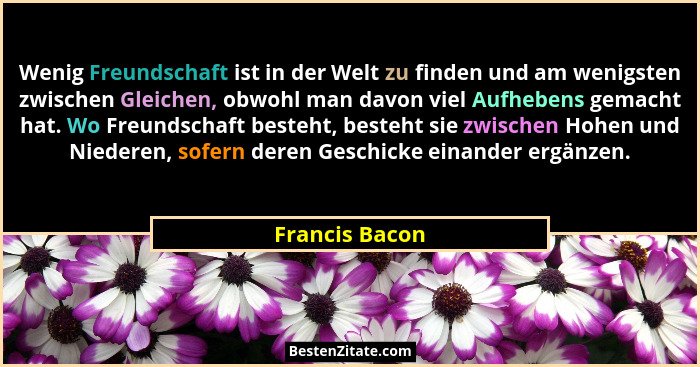 Wenig Freundschaft ist in der Welt zu finden und am wenigsten zwischen Gleichen, obwohl man davon viel Aufhebens gemacht hat. Wo Freundschaft besteht, besteht sie zwischen Hohen und Niederen, sofern deren Geschicke einander ergänzen.