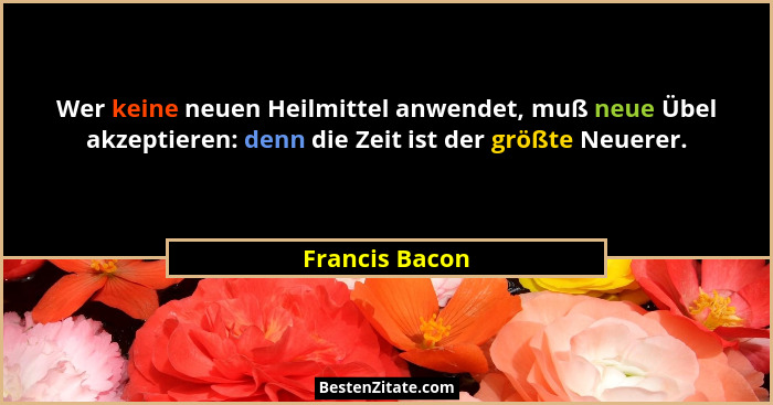 Wer keine neuen Heilmittel anwendet, muß neue Übel akzeptieren: denn die Zeit ist der größte Neuerer.