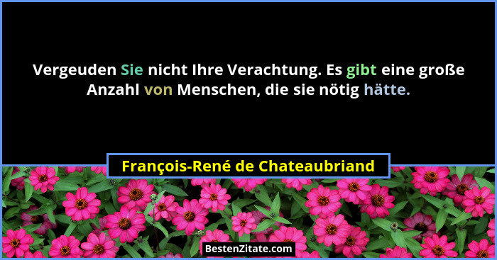 Vergeuden Sie nicht Ihre Verachtung. Es gibt eine große Anzahl von Menschen, die sie nötig hätte.