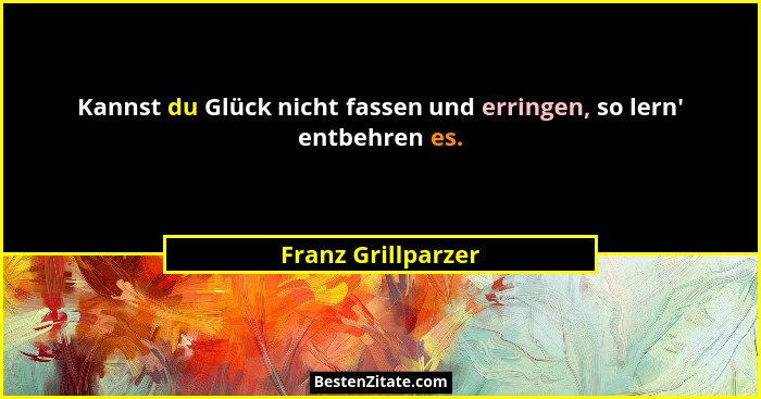Kannst du Glück nicht fassen und erringen, so lern' entbehren es.