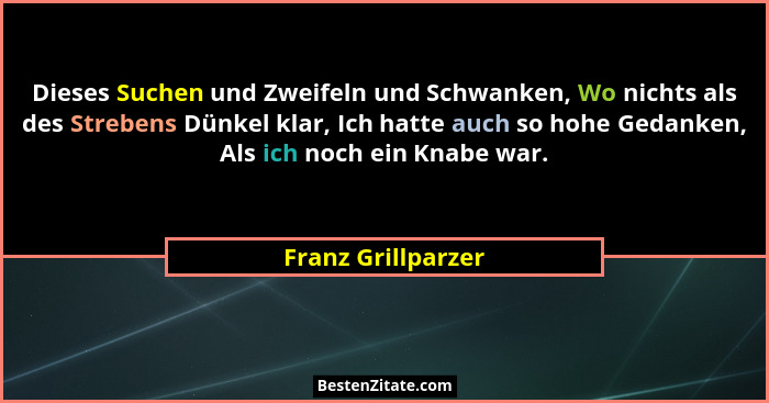 Dieses Suchen und Zweifeln und Schwanken, Wo nichts als des Strebens Dünkel klar, Ich hatte auch so hohe Gedanken, Als ich noch ein Knabe war.