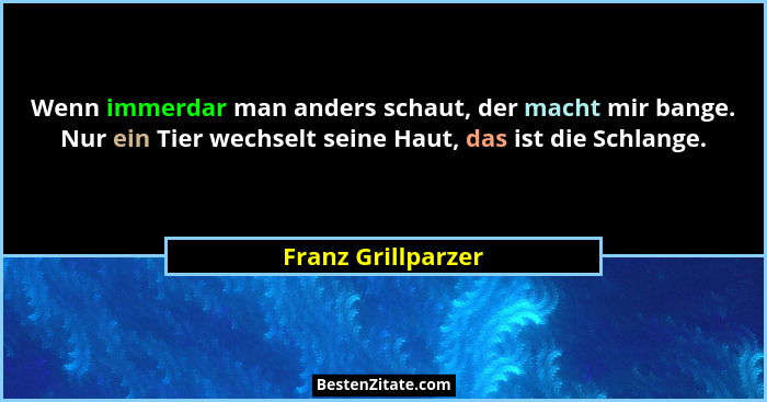 Wenn immerdar man anders schaut, der macht mir bange. Nur ein Tier wechselt seine Haut, das ist die Schlange.