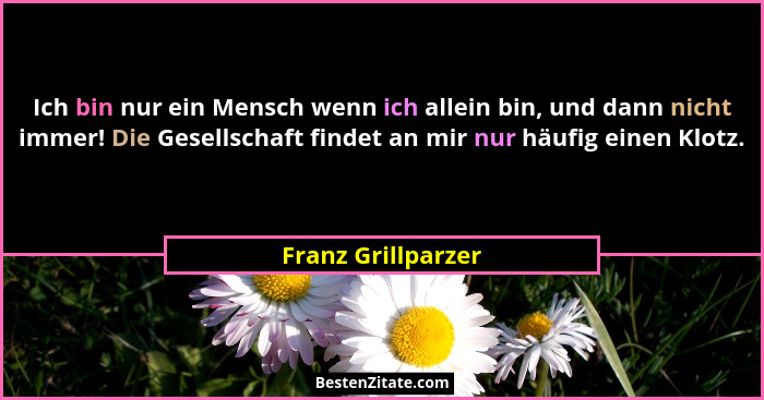 Ich bin nur ein Mensch wenn ich allein bin, und dann nicht immer! Die Gesellschaft findet an mir nur häufig einen Klotz.