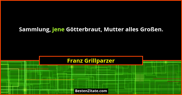 Sammlung, jene Götterbraut, Mutter alles Großen.