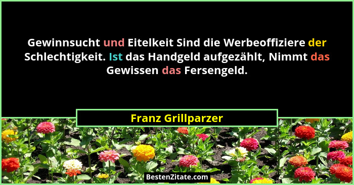 Gewinnsucht und Eitelkeit Sind die Werbeoffiziere der Schlechtigkeit. Ist das Handgeld aufgezählt, Nimmt das Gewissen das Fersengeld.