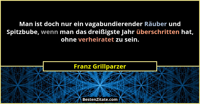 Man ist doch nur ein vagabundierender Räuber und Spitzbube, wenn man das dreißigste Jahr überschritten hat, ohne verheiratet zu sein.