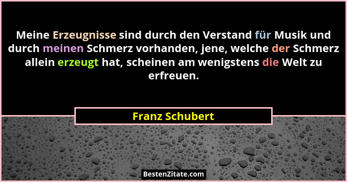 Meine Erzeugnisse sind durch den Verstand für Musik und durch meinen Schmerz vorhanden, jene, welche der Schmerz allein erzeugt hat, scheinen am wenigstens die Welt zu erfreuen.