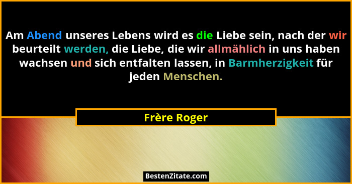 Am Abend unseres Lebens wird es die Liebe sein, nach der wir beurteilt werden, die Liebe, die wir allmählich in uns haben wachsen und sich entfalten lassen, in Barmherzigkeit für jeden Menschen.