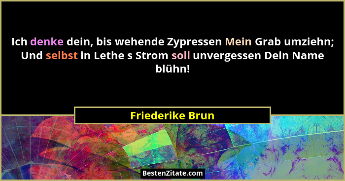 Ich denke dein, bis wehende Zypressen Mein Grab umziehn; Und selbst in Lethe s Strom soll unvergessen Dein Name blühn!