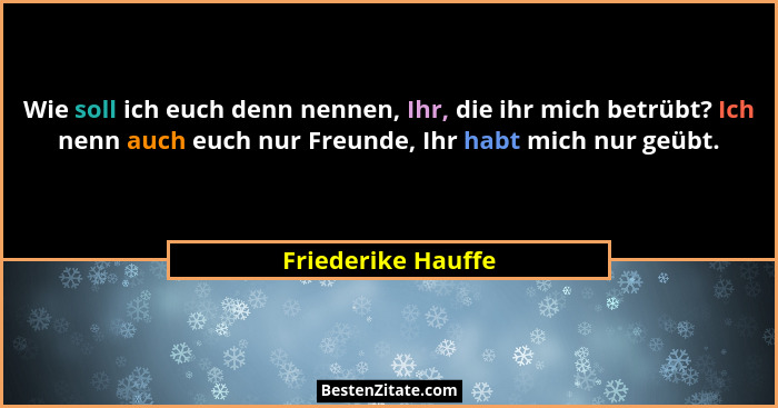 Wie soll ich euch denn nennen, Ihr, die ihr mich betrübt? Ich nenn auch euch nur Freunde, Ihr habt mich nur geübt.
