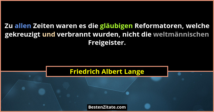 Zu allen Zeiten waren es die gläubigen Reformatoren, welche gekreuzigt und verbrannt wurden, nicht die weltmännischen Freigeister.