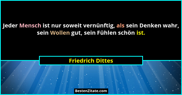 Jeder Mensch ist nur soweit vernünftig, als sein Denken wahr, sein Wollen gut, sein Fühlen schön ist.
