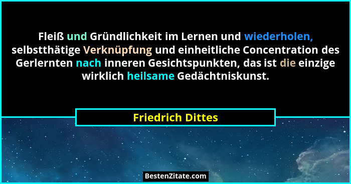Fleiß und Gründlichkeit im Lernen und wiederholen, selbstthätige Verknüpfung und einheitliche Concentration des Gerlernten nach inneren Gesichtspunkten, das ist die einzige wirklich heilsame Gedächtniskunst.