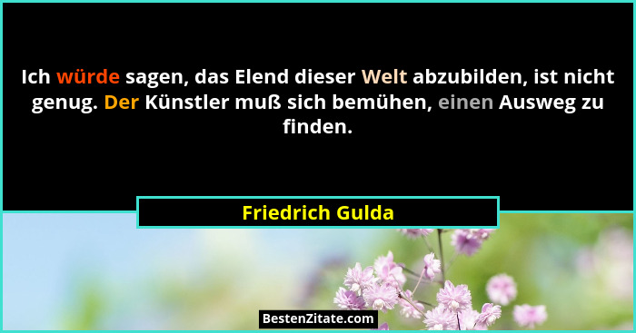 Ich würde sagen, das Elend dieser Welt abzubilden, ist nicht genug. Der Künstler muß sich bemühen, einen Ausweg zu finden.