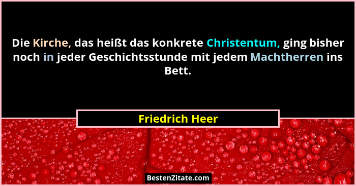 Die Kirche, das heißt das konkrete Christentum, ging bisher noch in jeder Geschichtsstunde mit jedem Machtherren ins Bett.