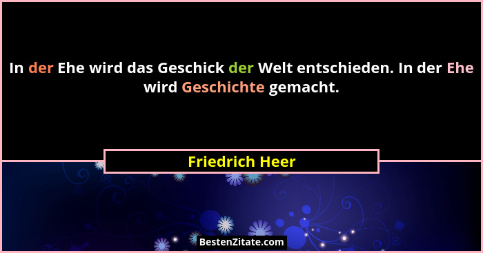 In der Ehe wird das Geschick der Welt entschieden. In der Ehe wird Geschichte gemacht.