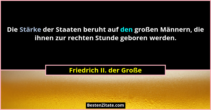 Die Stärke der Staaten beruht auf den großen Männern, die ihnen zur rechten Stunde geboren werden.