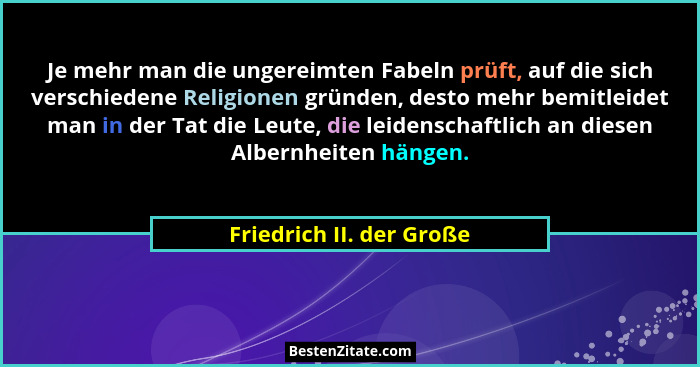 Je mehr man die ungereimten Fabeln prüft, auf die sich verschiedene Religionen gründen, desto mehr bemitleidet man in der Tat die Leute, die leidenschaftlich an diesen Albernheiten hängen.