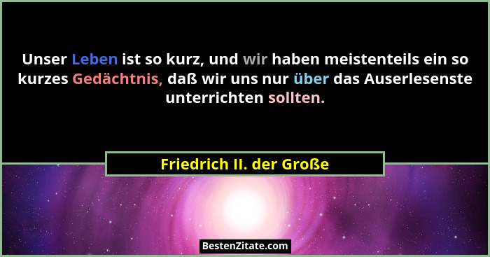 Unser Leben ist so kurz, und wir haben meistenteils ein so kurzes Gedächtnis, daß wir uns nur über das Auserlesenste unterrichten sollten.