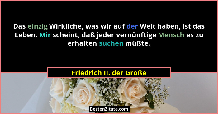 Das einzig Wirkliche, was wir auf der Welt haben, ist das Leben. Mir scheint, daß jeder vernünftige Mensch es zu erhalten suchen müßte.