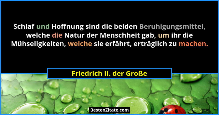 Schlaf und Hoffnung sind die beiden Beruhigungsmittel, welche die Natur der Menschheit gab, um ihr die Mühseligkeiten, welche sie erfährt, erträglich zu machen.