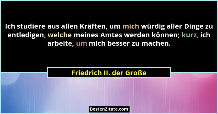 Ich studiere aus allen Kräften, um mich würdig aller Dinge zu entledigen, welche meines Amtes werden können; kurz, ich arbeite, um mich besser zu machen.