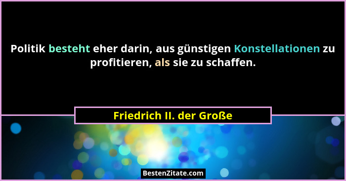Politik besteht eher darin, aus günstigen Konstellationen zu profitieren, als sie zu schaffen.