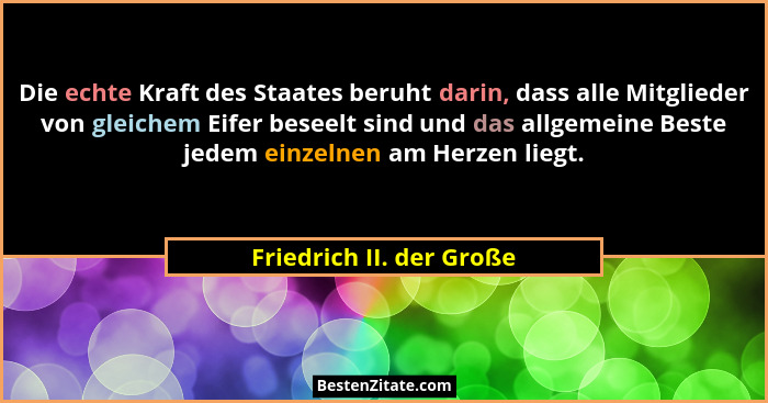 Die echte Kraft des Staates beruht darin, dass alle Mitglieder von gleichem Eifer beseelt sind und das allgemeine Beste jedem einzelnen am Herzen liegt.