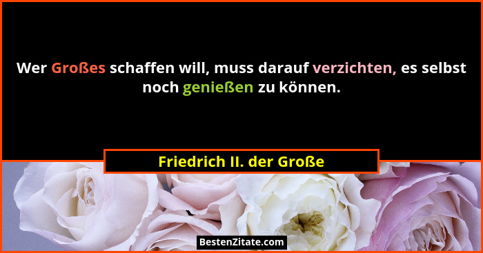 Wer Großes schaffen will, muss darauf verzichten, es selbst noch genießen zu können.