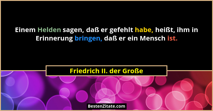 Einem Helden sagen, daß er gefehlt habe, heißt, ihm in Erinnerung bringen, daß er ein Mensch ist.