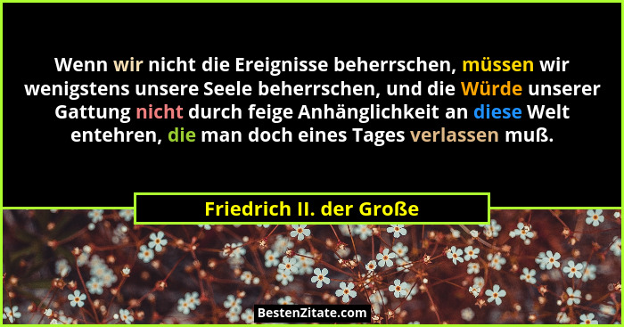 Wenn wir nicht die Ereignisse beherrschen, müssen wir wenigstens unsere Seele beherrschen, und die Würde unserer Gattung nicht durch feige Anhänglichkeit an diese Welt entehren, die man doch eines Tages verlassen muß.