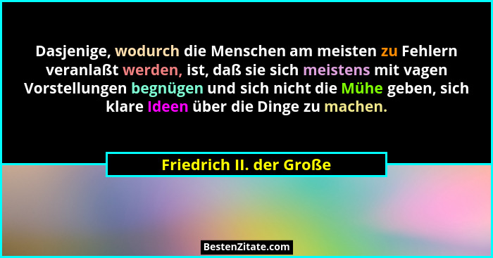 Dasjenige, wodurch die Menschen am meisten zu Fehlern veranlaßt werden, ist, daß sie sich meistens mit vagen Vorstellungen begnügen und sich nicht die Mühe geben, sich klare Ideen über die Dinge zu machen.
