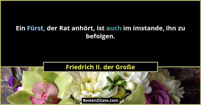 Ein Fürst, der Rat anhört, ist auch im imstande, ihn zu befolgen.