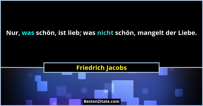 Nur, was schön, ist lieb; was nicht schön, mangelt der Liebe.