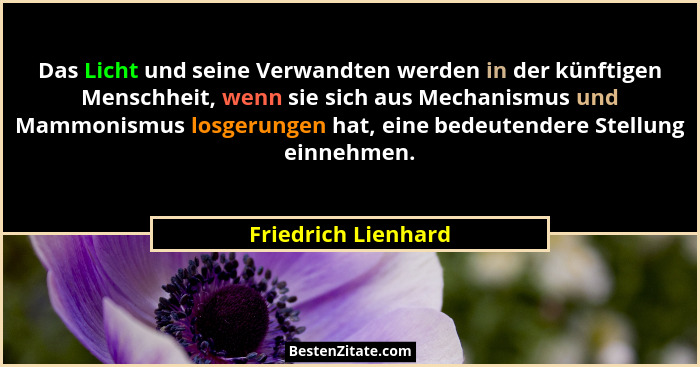 Das Licht und seine Verwandten werden in der künftigen Menschheit, wenn sie sich aus Mechanismus und Mammonismus losgerungen hat, eine bedeutendere Stellung einnehmen.