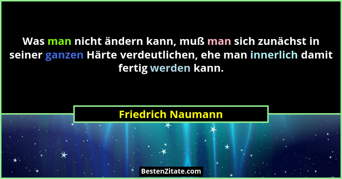 Was man nicht ändern kann, muß man sich zunächst in seiner ganzen Härte verdeutlichen, ehe man innerlich damit fertig werden kann.