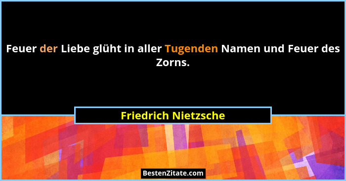 Feuer der Liebe glüht in aller Tugenden Namen und Feuer des Zorns.