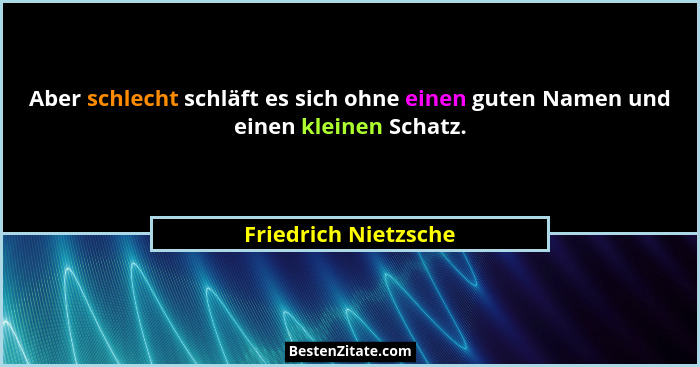 Aber schlecht schläft es sich ohne einen guten Namen und einen kleinen Schatz.