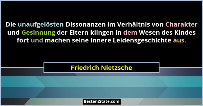 Die unaufgelösten Dissonanzen im Verhältnis von Charakter und Gesinnung der Eltern klingen in dem Wesen des Kindes fort und machen seine innere Leidensgeschichte aus.