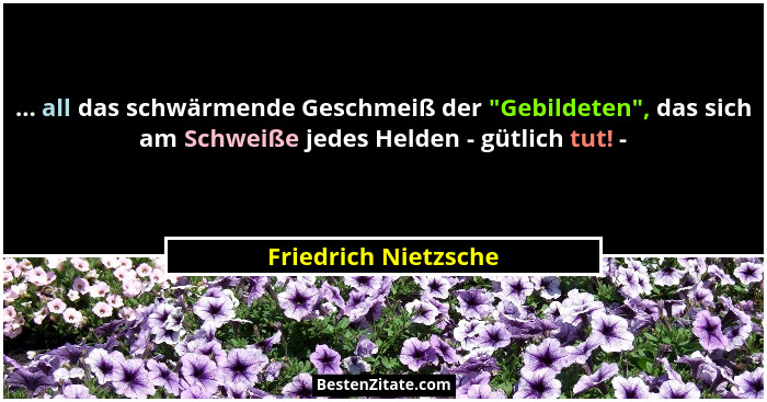 ... all das schwärmende Geschmeiß der "Gebildeten", das sich am Schweiße jedes Helden - gütlich tut! -