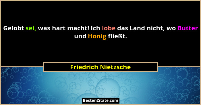 Gelobt sei, was hart macht! Ich lobe das Land nicht, wo Butter und Honig fließt.