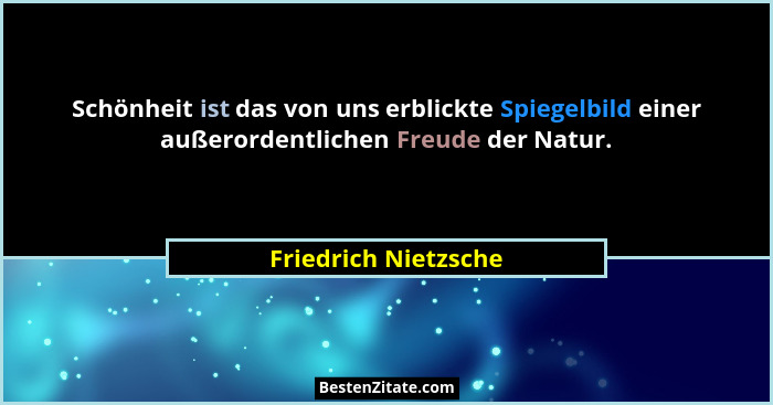 Schönheit ist das von uns erblickte Spiegelbild einer außerordentlichen Freude der Natur.