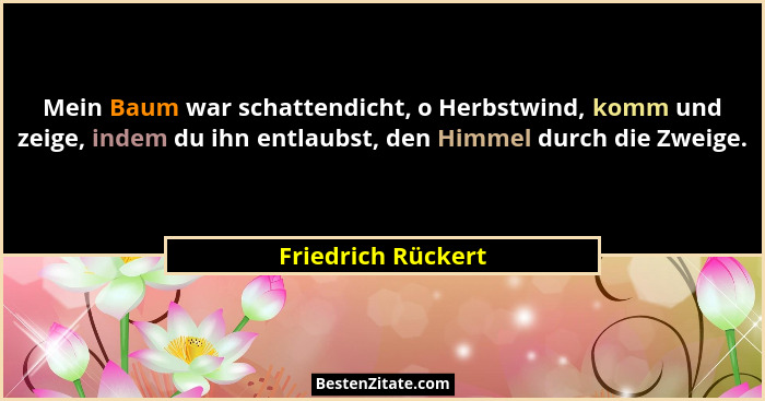 Mein Baum war schattendicht, o Herbstwind, komm und zeige, indem du ihn entlaubst, den Himmel durch die Zweige.
