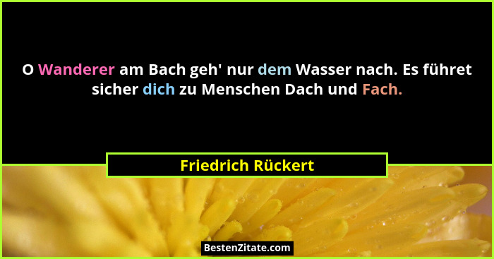 O Wanderer am Bach geh' nur dem Wasser nach. Es führet sicher dich zu Menschen Dach und Fach.