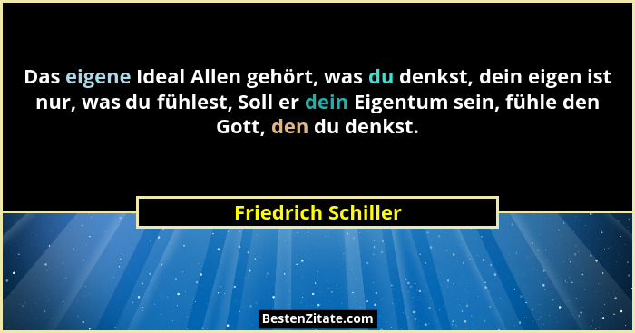 Das eigene Ideal Allen gehört, was du denkst, dein eigen ist nur, was du fühlest, Soll er dein Eigentum sein, fühle den Gott, den du denkst.