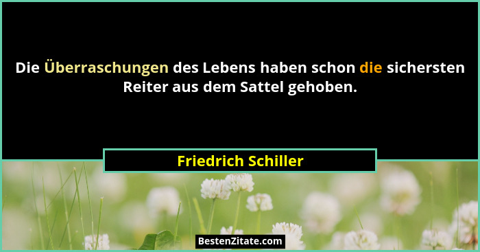 Die Überraschungen des Lebens haben schon die sichersten Reiter aus dem Sattel gehoben.