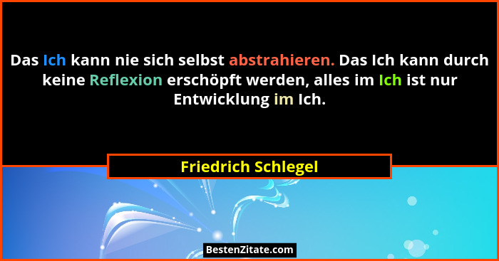 Das Ich kann nie sich selbst abstrahieren. Das Ich kann durch keine Reflexion erschöpft werden, alles im Ich ist nur Entwicklung im Ich.