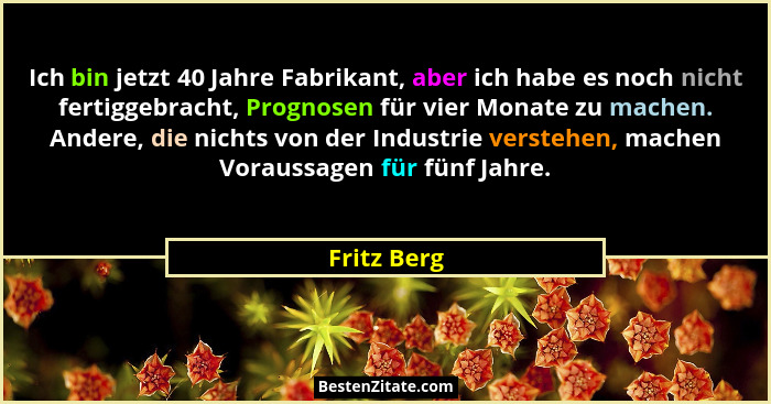 Ich bin jetzt 40 Jahre Fabrikant, aber ich habe es noch nicht fertiggebracht, Prognosen für vier Monate zu machen. Andere, die nichts von der Industrie verstehen, machen Voraussagen für fünf Jahre.